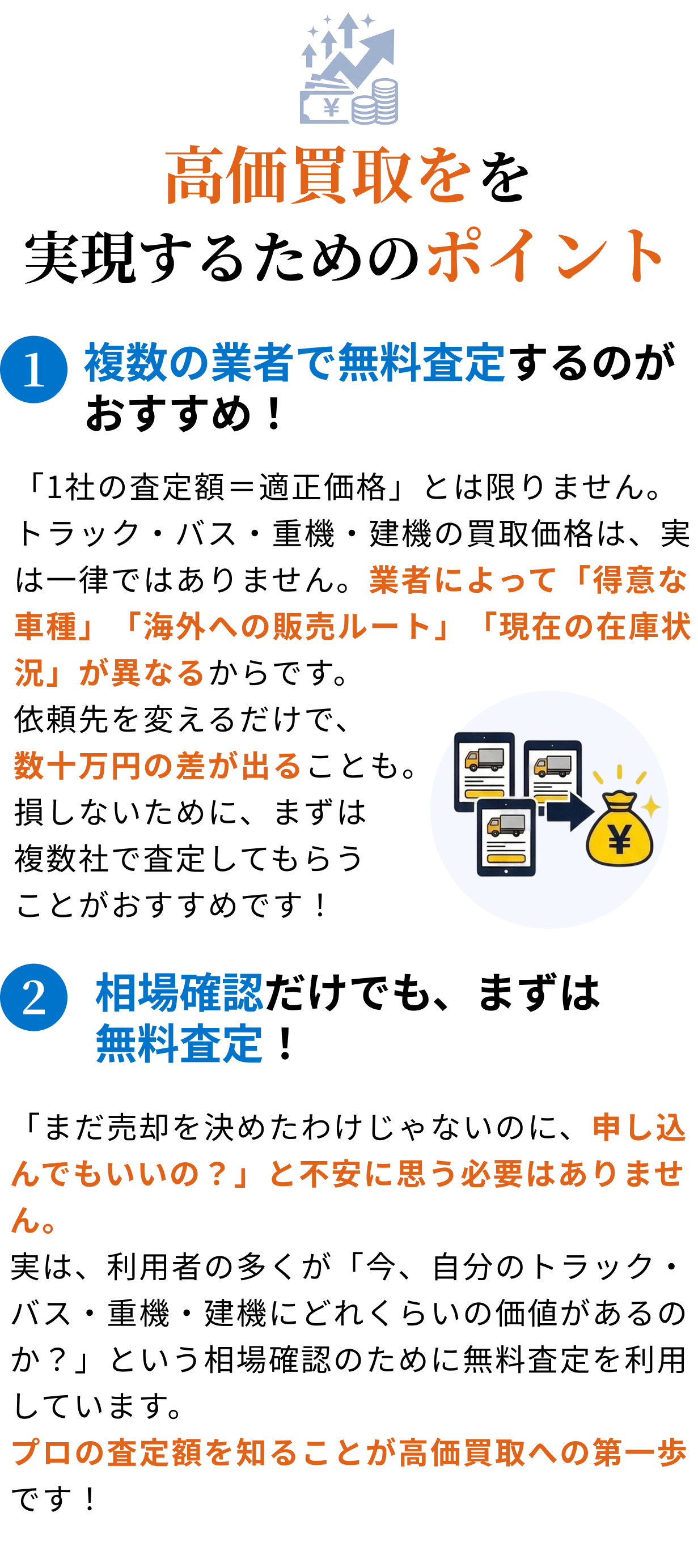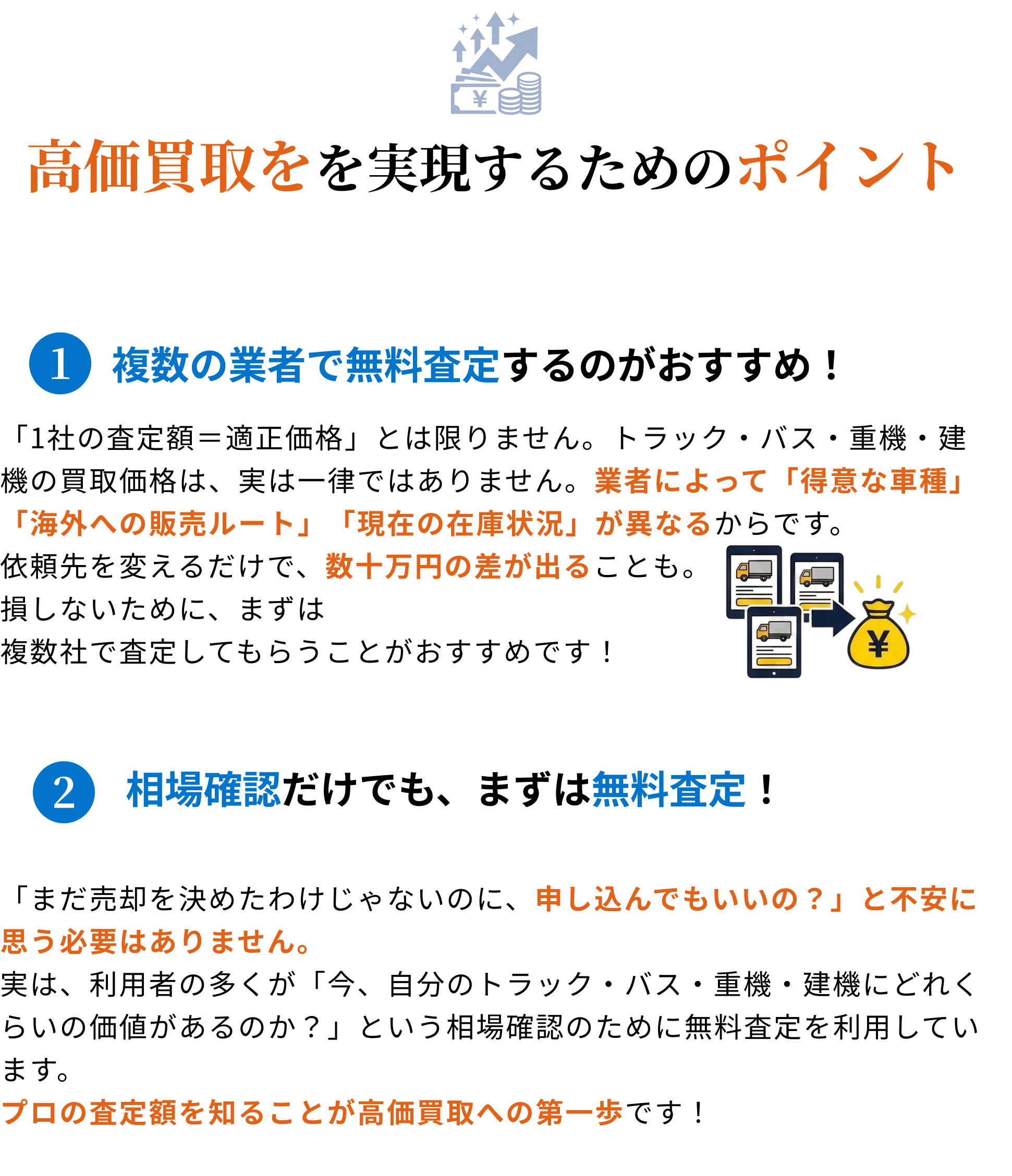 使わなくなったダンプの売却を検討するために、査定依頼を複数の買い取り業者に依頼したところ、最後の一押しを頑張ってくれたビートラックさんに売却することを決めました。少しでも頑張ってくれる気持ちはありがたいです。今後も何かあれば利用させていただきます。